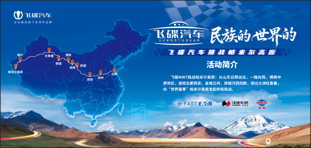 从黄海之滨的日照万平口启程,飞碟汽车跨越6930公里,沿着丝绸之路的古老轨迹,穿越中原腹地,驶过见证大汉雄风的河西四郡,最终登上平均海拔4500米的帕米尔高原。在这段极限征途中,氧气含量仅为平原一半,风沙弥漫、陡坡连绵——飞碟汽车以一场严苛的高原实战,生动诠释了“飞碟汽车 民族的 世界的”活动主题。