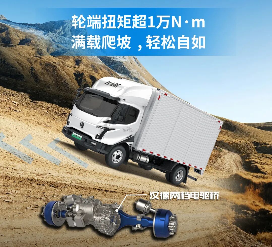 在核心性能上,这辆车搭载了行业领先的140.41kWh宁德时代液冷电池,跑得远、也靠得住。配合峰值功率185kW、峰值扭矩420N·m的高效电机,以及汉德两档电驱桥,拥有25.03/11.47双档速比,既能让车辆起步有劲,又能保证高速省电,轻松应对城际复杂路况和中短途高效运输的需求。5t级汉德后桥,搭配前3后5+2片板簧悬挂和700R16低滚阻轮胎,进一步增强了车辆的承载能力和行驶经济性。